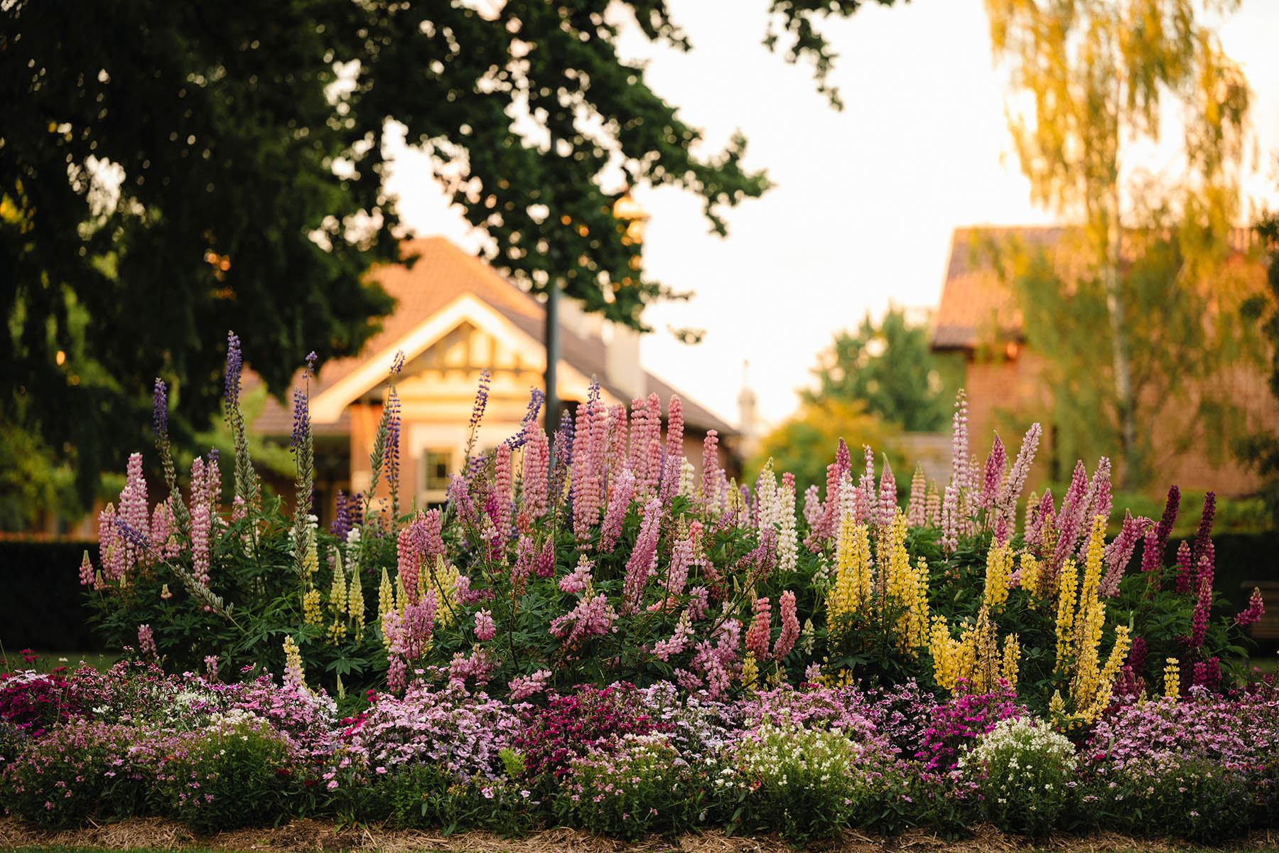 Enjoy wide streets with side walks, trees & cobblestone intersections.